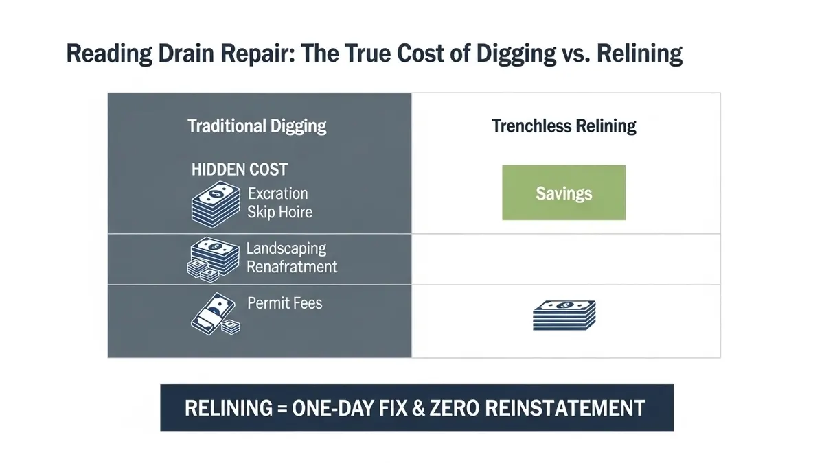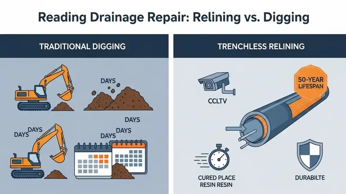 Avoid costly, messy excavations. Compare Dagenham Drain Relining vs Digging to save your home, time, and money with our expert, minimally invasive, and durable no-dig repair solutions for local drains.